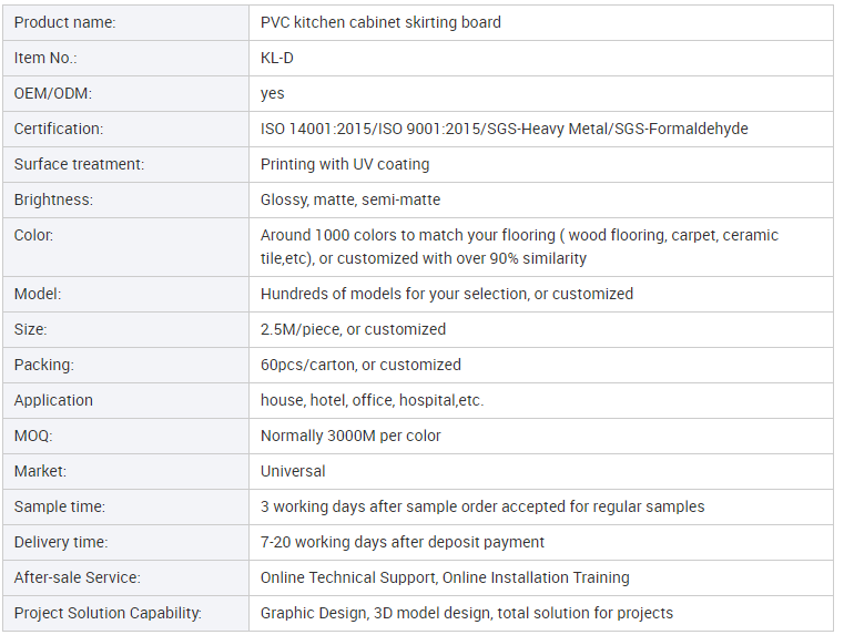 PVC cabinet skirting